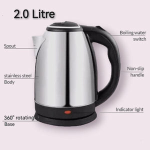 Elevate your kitchen essentials with the Automatic Electric Kettle 2.0L — a perfect blend of speed, safety, and style. Designed with a powerful 1000W heating element, this stainless steel kettle rapidly boils water, making it ideal for tea, coffee, instant noodles, or warm drinks in minutes.